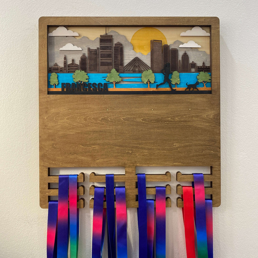 Custom Wooden Medal Hanger for Runners & Cyclists | Austin City Design | Personalized Display by ChampionHanger