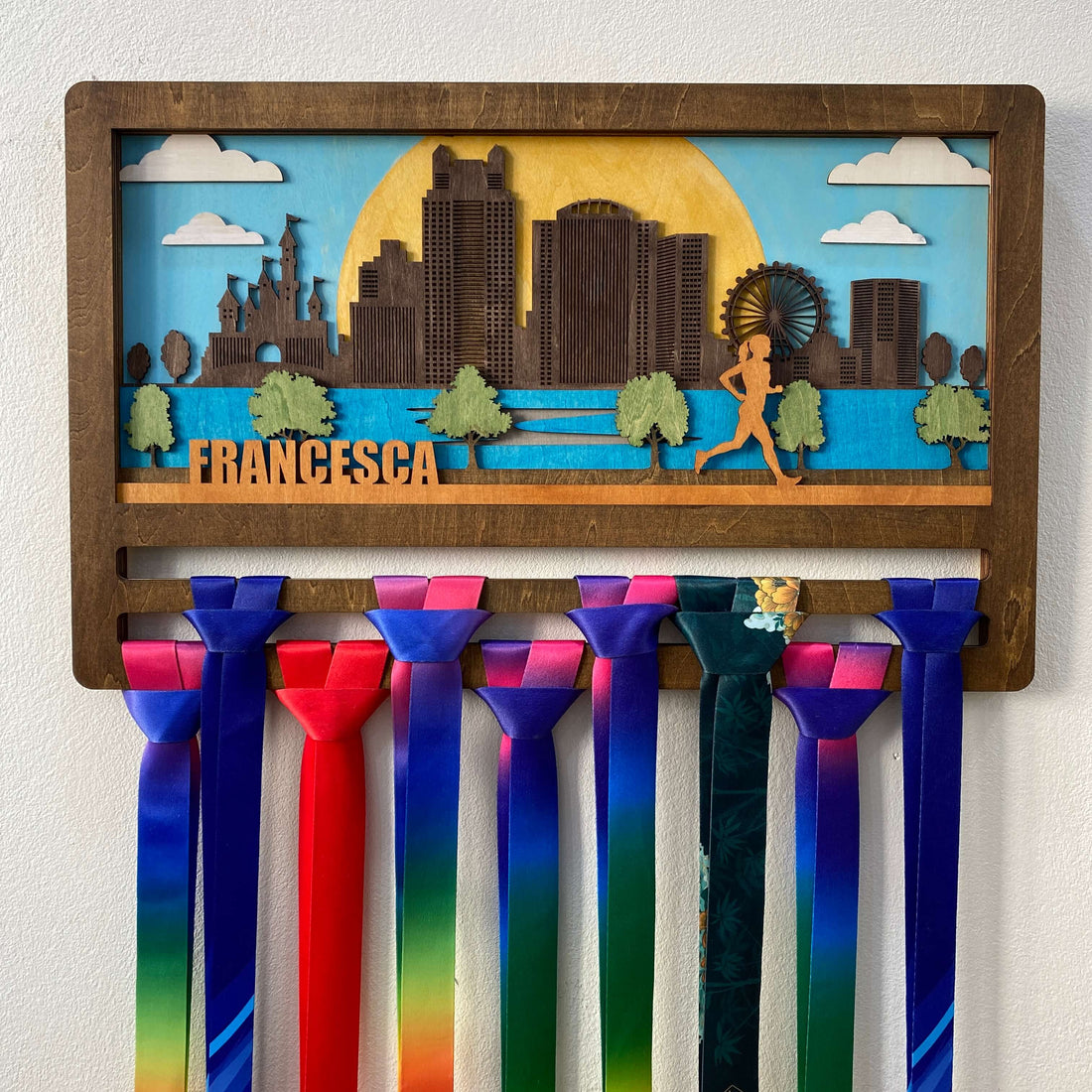 Custom Wooden Medal Hanger for Runners & Cyclists | Dallas City Design | Personalized Display by ChampionHanger