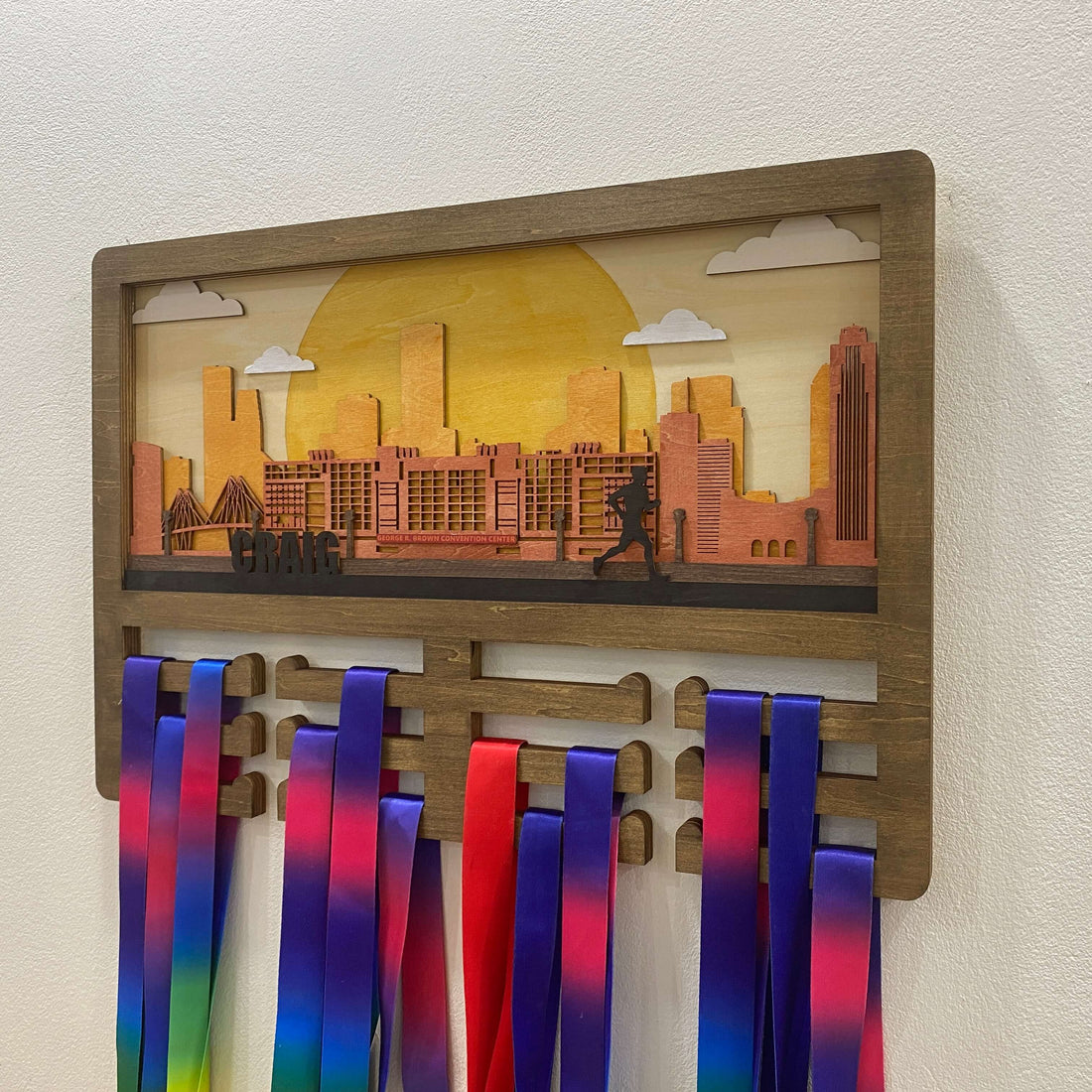Custom Wooden Medal Hanger for Runners & Cyclists | Dallas City Design | Personalized Display by ChampionHanger