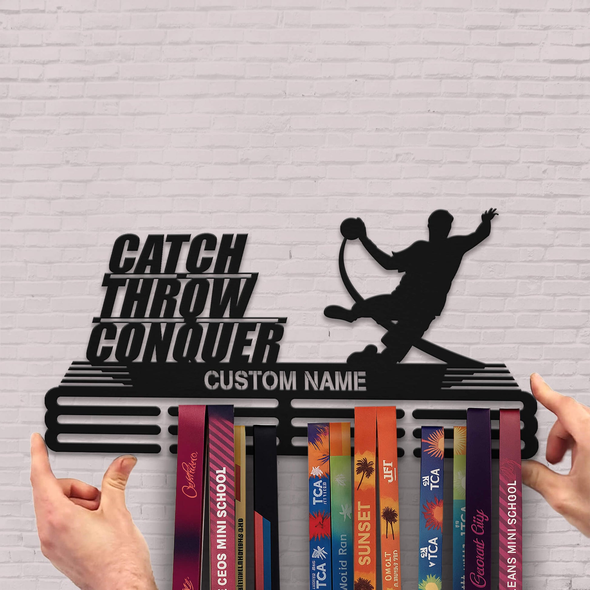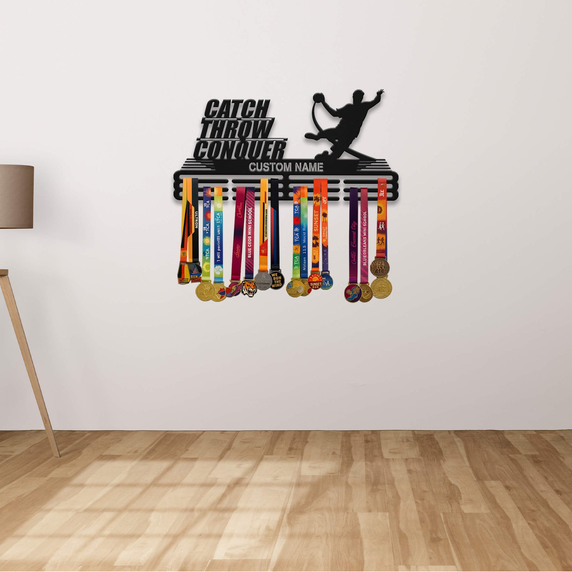 Personalized Handball Medal Hanger – Stainless Steel Medal Holder with Custom Name & “Catch Throw Conquer” Quote | ChampionHanger