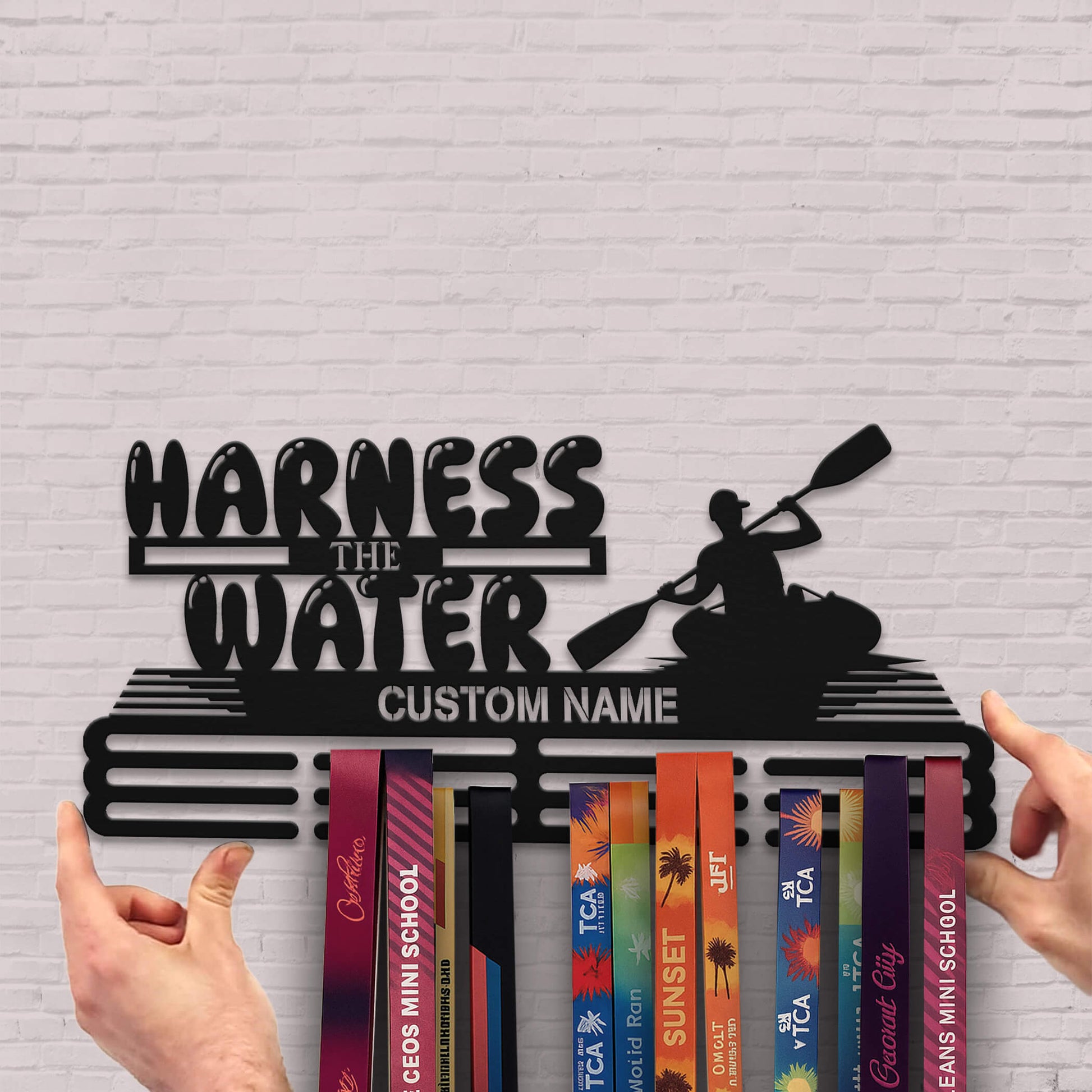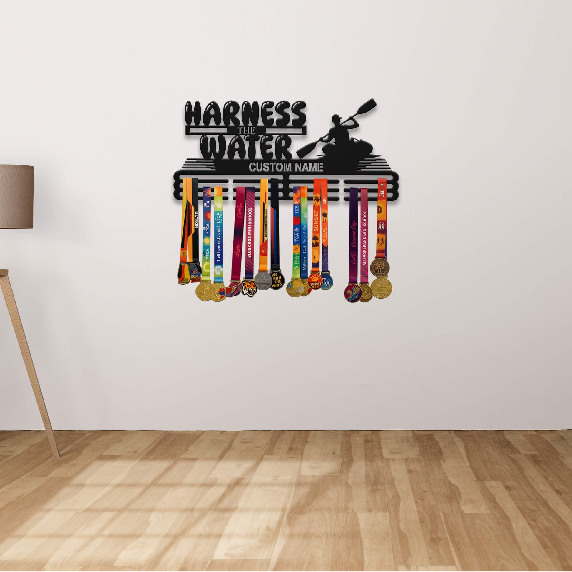 Personalized Kayak Medal Hanger – Stainless Steel Medal Holder with “Harness the Water” Quote | ChampionHanger