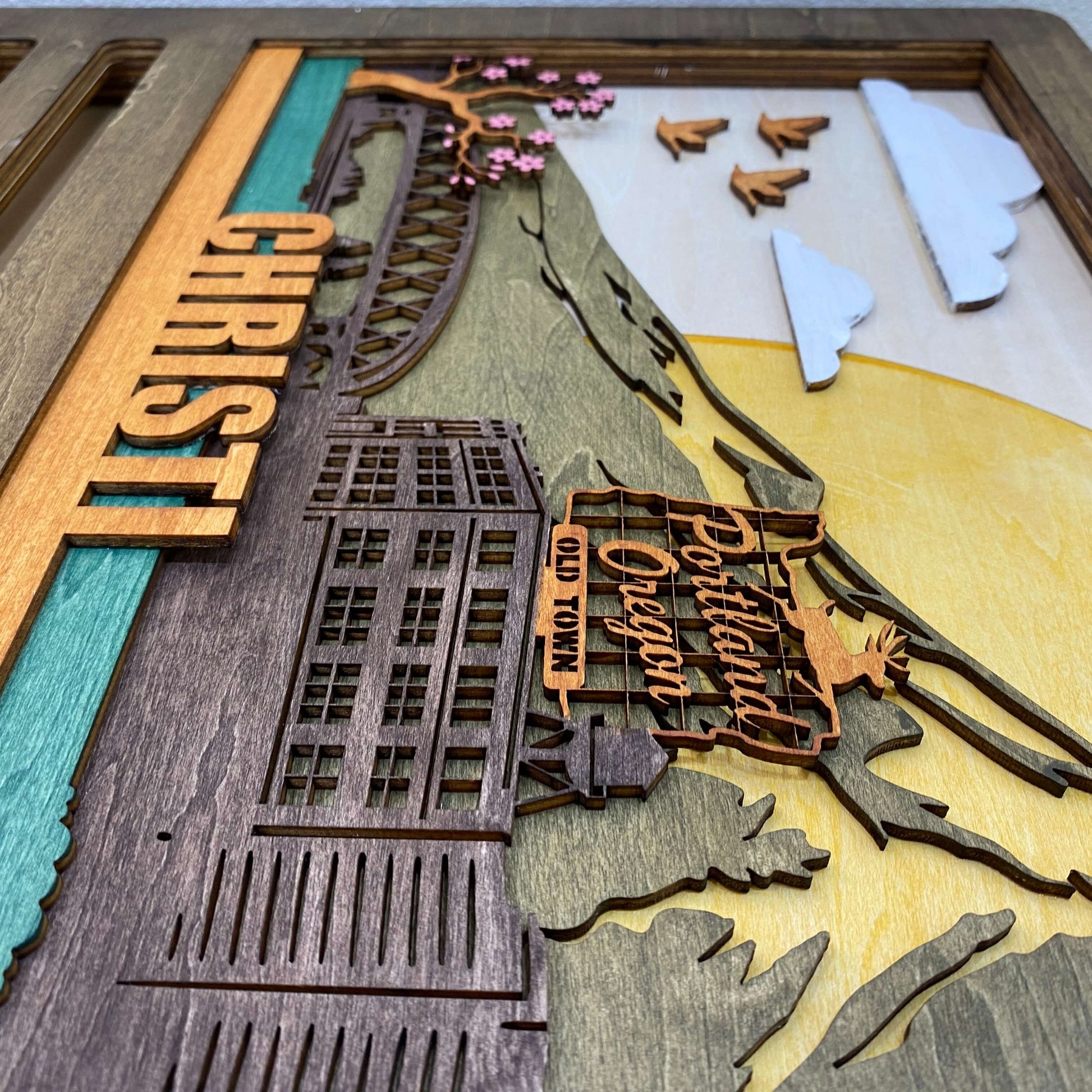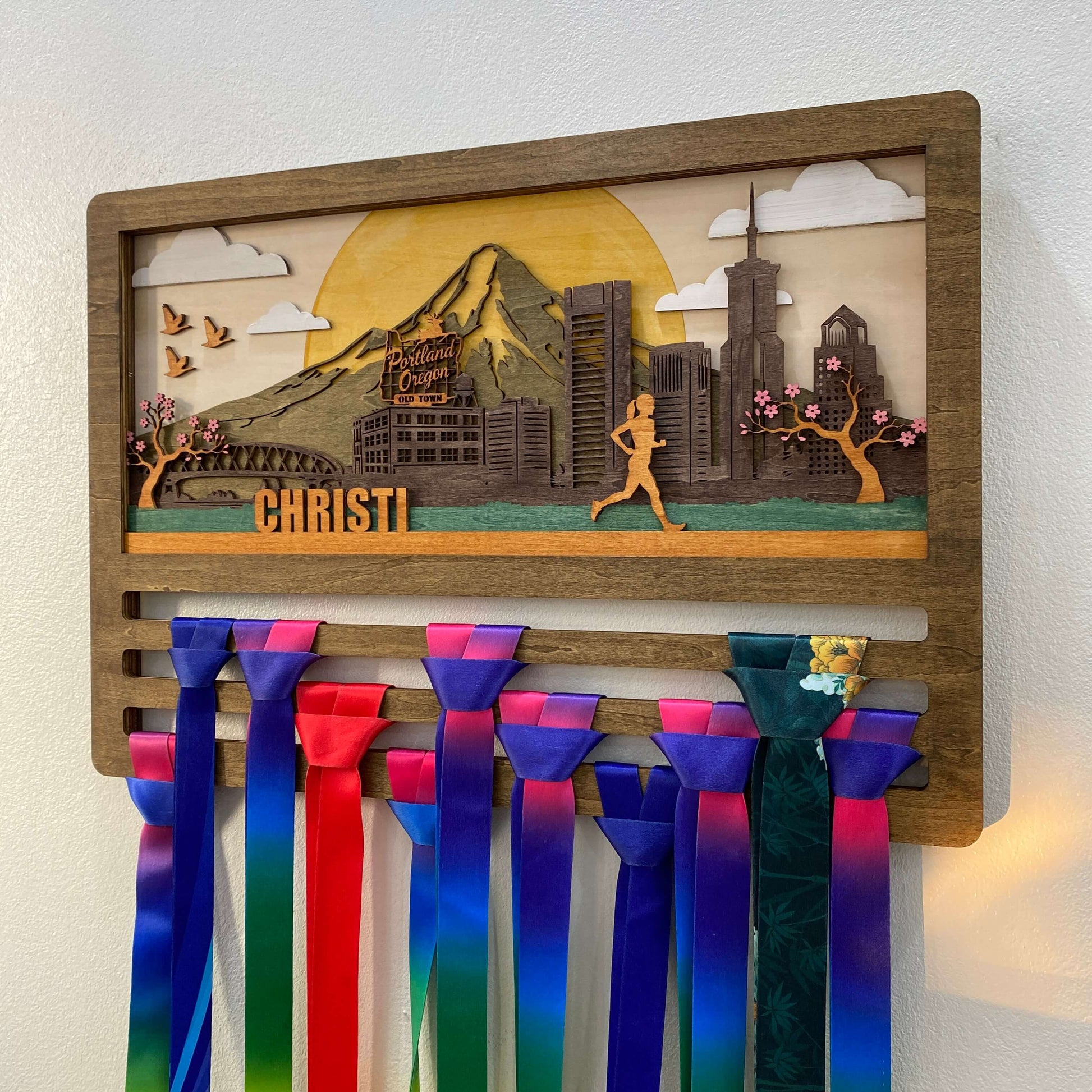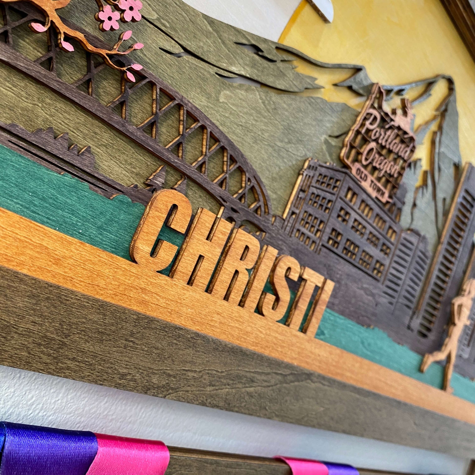 Personalized Wooden Medal Hanger – Portland Oregon City Design | Custom Name Running Medal Holder | Championhanger